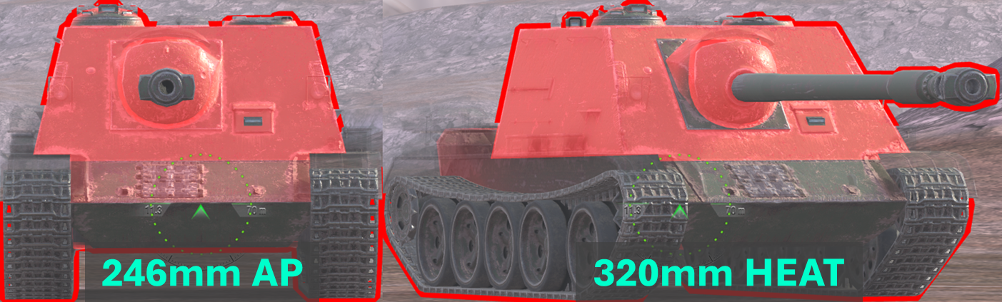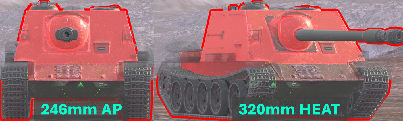 vs 246mm AP (top image), 320mm HEAT (bottom image)
