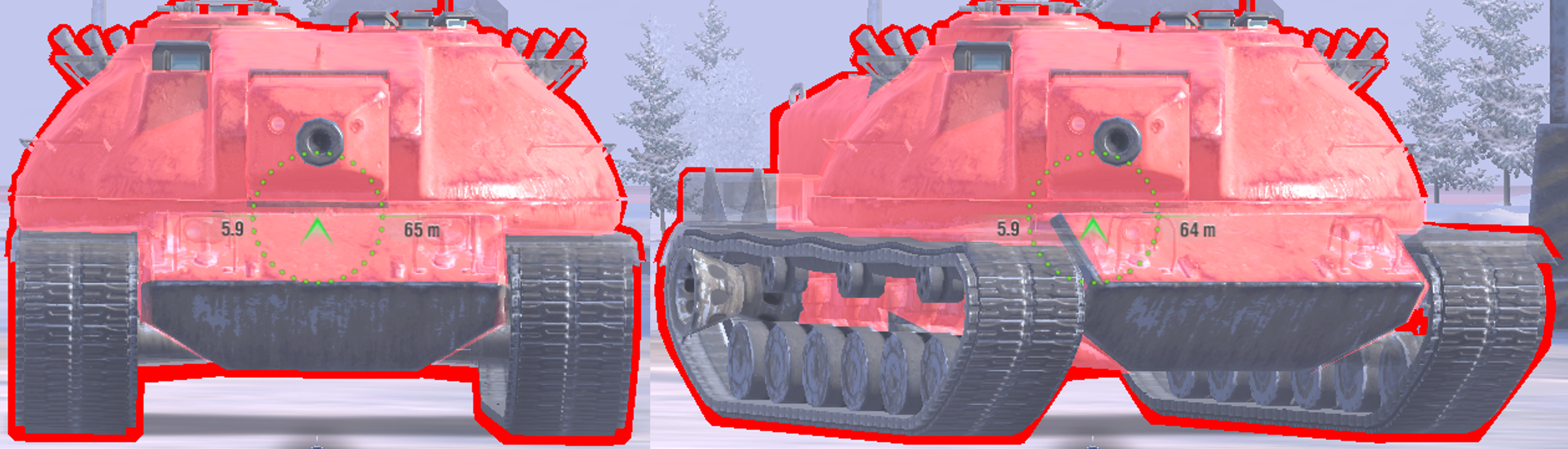 The front area has an inverse angle at the bottom of the hull behind the tracks (much like an IS-7), however due to double overmatch, it doesn’t get troll bounces like an IS-7 would.